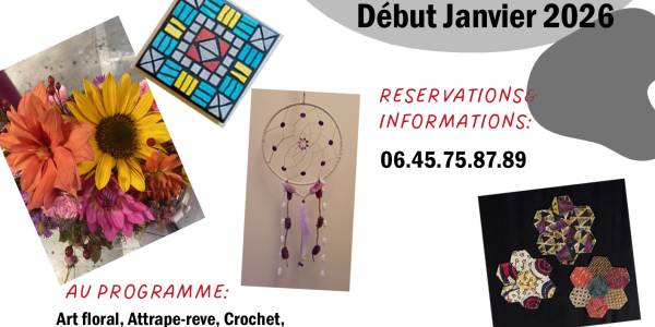 Activités artistiques Nouvelles activités artistiques à partir de janvier 2026 Lire la suite Lun. 05 janv.