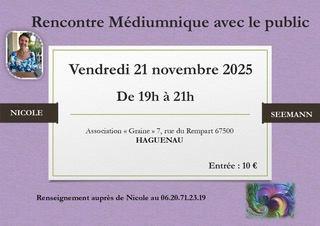 Conférence Vendredi 21 novembre à 19h animée par Nicole Seemann, médium